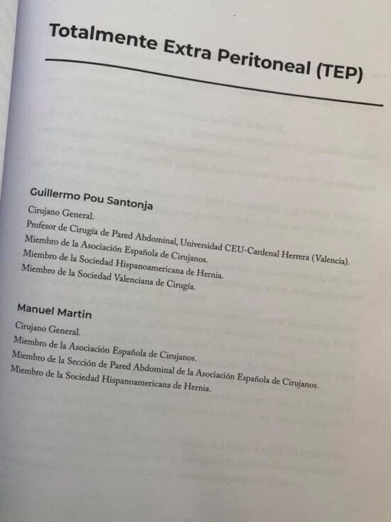 redacción del capítulo dedicado a la técnica Totalmente Extraperitoneal TEP, de la que